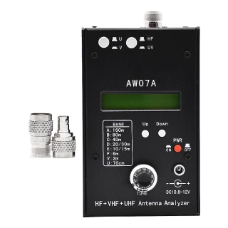 Feature: 1. Comprehensive Analysis: TheHF +UV spectrum analyzers is capable of testing standing wave ratio (SWR) status, measuring impedance and reactance components, and diagnosing antenna issues. An integrated tool for comprehensive antenna analysis, it incorporates a variable oscillator, frequency counter, independent oscillator, 50 Ohm RF bridge detector, A/D converter, and microcontroller for accurate and reliable measurements. 2. Portability: The AW07Amultiband antenna analyzer is a compact, battery-powered RF impedance analyzer designed to meet the needs of on-site testing. Its small size and portability allow for easy use anywhere without the need for an external power source. 3. Wide Frequency Range: TheSWR antenna analyzer offers a wide working frequency range from HF to 490MHz. It covers six overlapping frequency bands from 1.5MHz to 71MHz, including SWR measurements from 110-185MHz and 300-490MHz. This provides excellent frequency coverage suitable for a wide range of applications. 4. Precise Measurement: Using theimpedance SWR antenna analyzer, you can measure impedance and reactance components with high precision. This feature paves the way for precise tuning of the antenna system. 5. Versatility: In addition to antenna analysis functions, thisSWR antenna meter tester also provides a range of additional features including signal generation, capacitance measurement, inductance measurement, impedance value display, resistance value display, SWR value display (1.1 to 9.99), RF strength meter, and frequency counter.